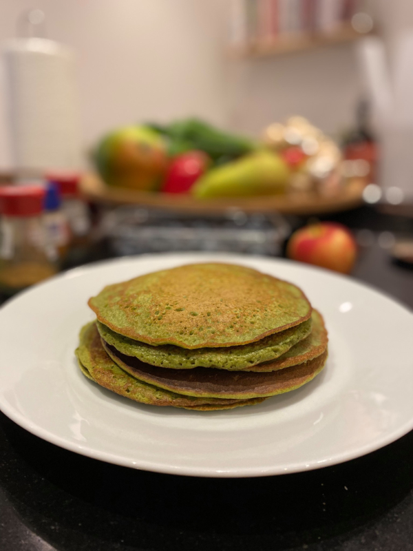 Ouders kennen vaak wel de uitdaging: hoe zorg ik ervoor dat mijn kind voldoende gezonde dingen eet. Pizza’s patat en pannenkoeken zijn natuurlijk de favoriete maaltijden van veel kinderen. Met dit recept kun je ervoor zorgen dat ze groente binnenkrijgen door er verse bladspinazie aan toe te voegen en banaan als fruit die ook zorgt voor zoete smaak. Ik gebruik havermeel omdat dit meer vezels bevat en daar kunnen we niet teveel van eten. Om de weerstand te verhogen doe ik er een schep Greenjuice door. Ik gebruik ongezoete amandelmelk omdat dit van nature zoet is en je daarom geen suiker hoeft toe te voegen en amandelmelk bevat minder calorieën dan magere melk.